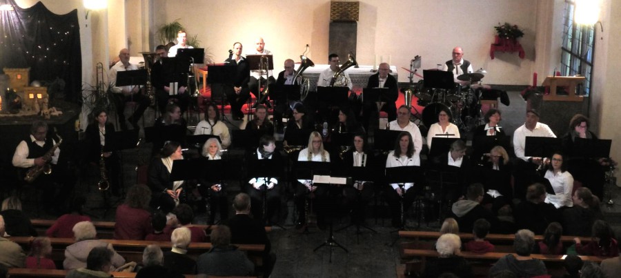 Mit den Stücken „A Trilogy of English Carols“ sowie „White Christmas“ von Irving Berlin leistete der Musikverein mit dem Orchester der Musikgemeinschaft